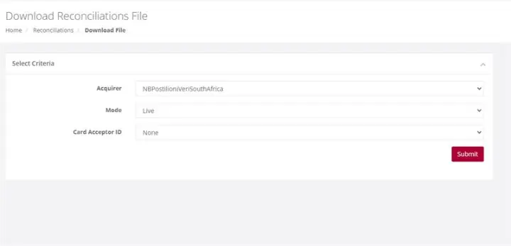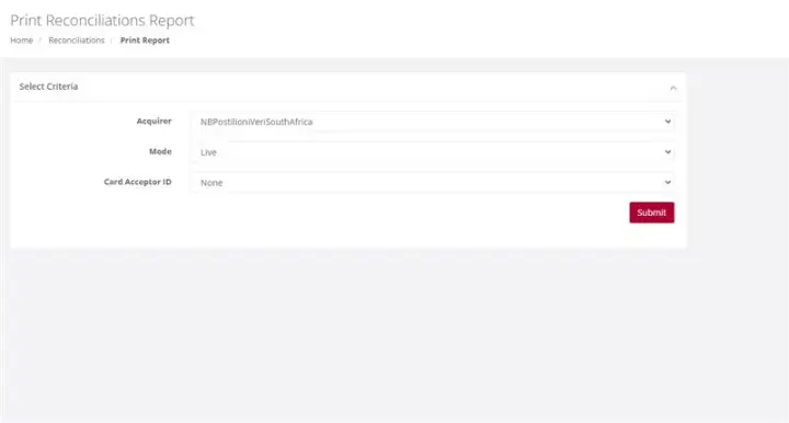 If you have only one Merchant Card Acceptor ID, simply click on Submit. If you however have more than one, then click on the drop down and select the Card Acceptor ID for which you want the report before you click on Submit.