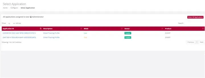Click on the Application ID on which you want to do the lookup e.g., Live or Test