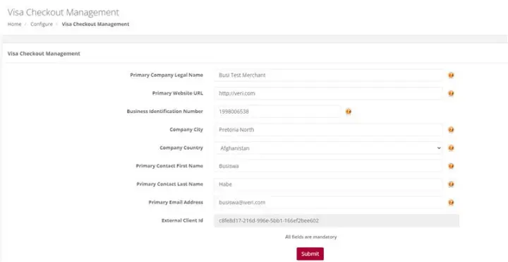 NB: The merchant will also need to notify the Acquiring bank that they need to be enabled for Visa Checkout.