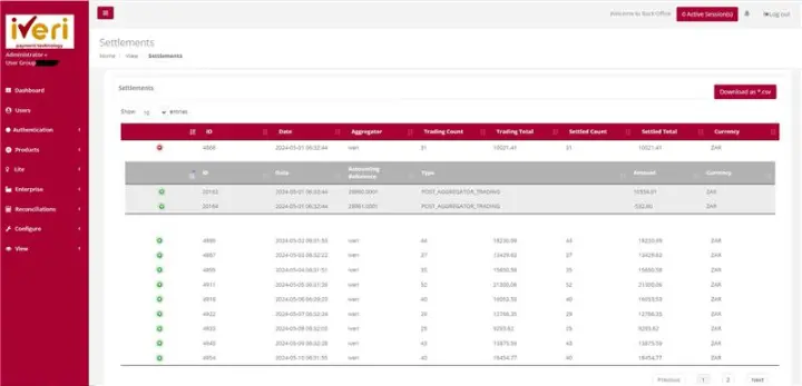 Purpose - This detail information provides the merchant the view based on what they will be settled on based on processed transactions. It also provides a breakdown on what could have been retained by the acquiring bank and what is due to them as the merchant. iVeri will then settle the merchant once the acquirer settles the funds to iVeri.