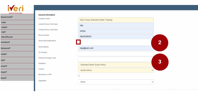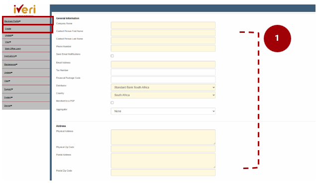 1. Under the ‘General information’ tab, you would capture the details of the Merchant.