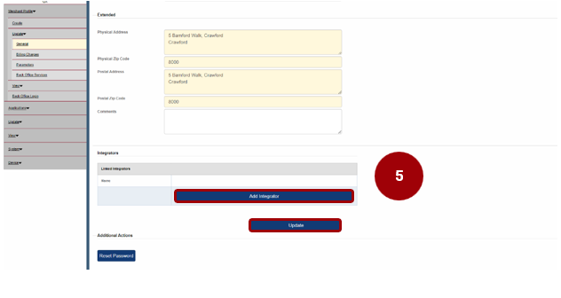 Once the user has captured the details under Local, click on the ‘Update’ tab.
