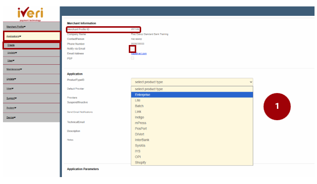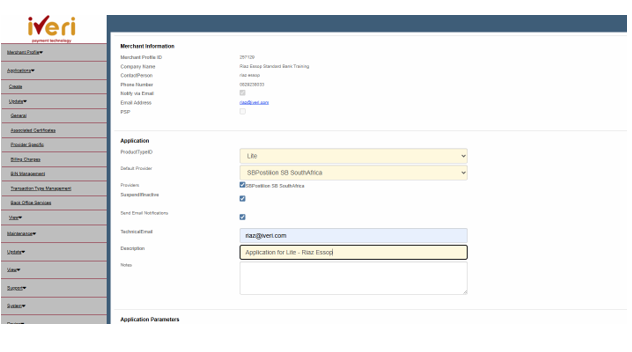 This crucial parameter is where the user will select from the dropdown, the iVeri solution for the merchant, based on the merchant agreement.