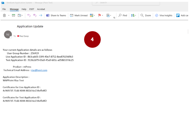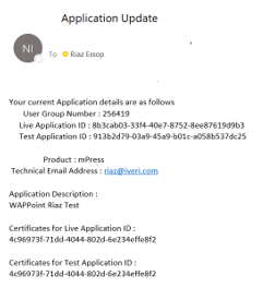 Checking the box will ensure that the merchant receives e-mail notifications. The technical e-mail address can be captured here and may be different from the e-mail address captured under the merchant’s general information. The technical e-mail address will allow the merchant to receive e-mail notifications for any updates/ changes that are made to their application.