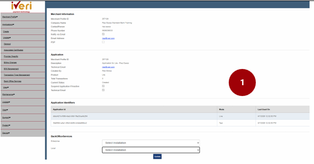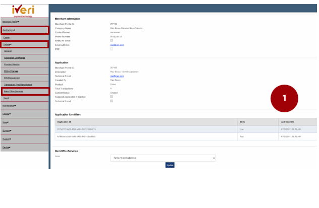 1. This is where BackOffice Services are created for the merchant. This is a mandatory step that would need to be updated in order to activate an application for a Merchant.