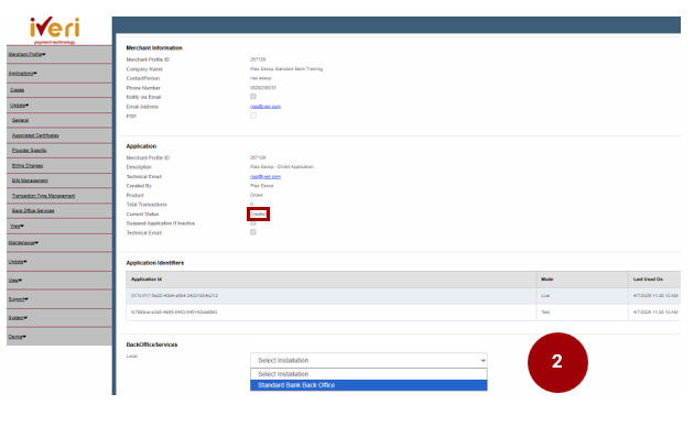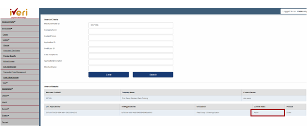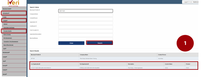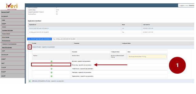 1. Select the Live Application ID/ iVeri Solution you would like to set to Active.