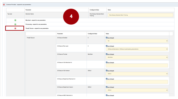 5. In order to configure the 3D to configure 3D secure, the following parameters would need to be configured: