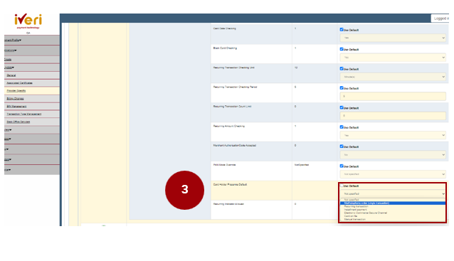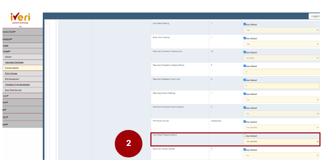 2. Navigate your way to the ‘Cardholder Presence Default’ Parameter. This parameter will be defaulted to ‘Not specified’.