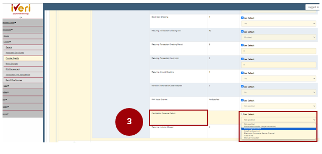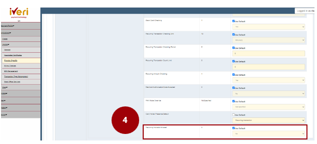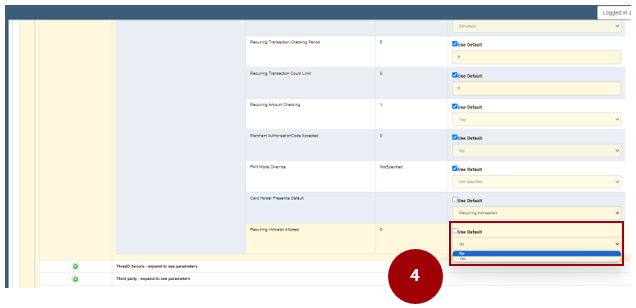 4. The next parameter that needs to be update is the ‘Recurring Indicator allowed’.