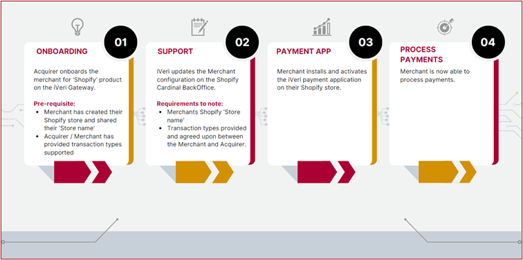 The Guide covers the iVeri Admin Portal used by the Acquirer to onboard a Merchant and the Shopify Back end used by the Merchant to configure iVeri as their payment provider.