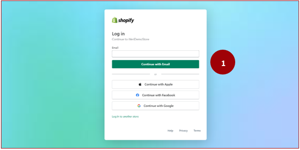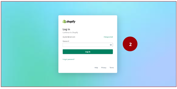 1. In this example, insert your E-mail address linked to your Shopify account.