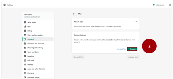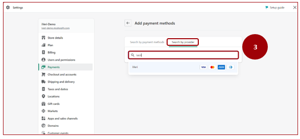 • Once a merchant has created their Shopify store, they would be able to setup iVeri as their payment provider.