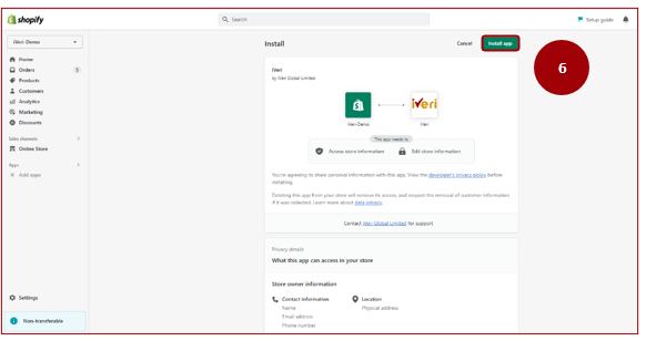 6. The Merchant would need to install the Iveri payment application by clicking on the ‘Install app’ tab.