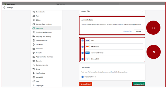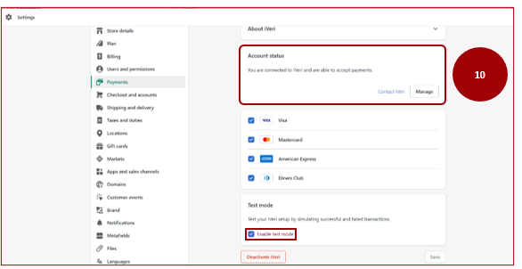 3. Provide iVeri with Merchant Store name (as it appears on the Shopify store) and Transaction types supported