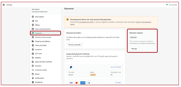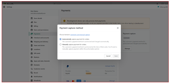 Navigation Path: Settings > Payments > Payment Capture > Manage