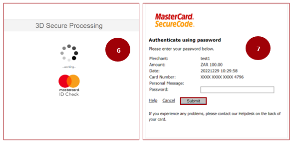 If the Acquirer uses 3DS as an authentication method, the card holder will go through the 3DS authentication process as shown in the above example.