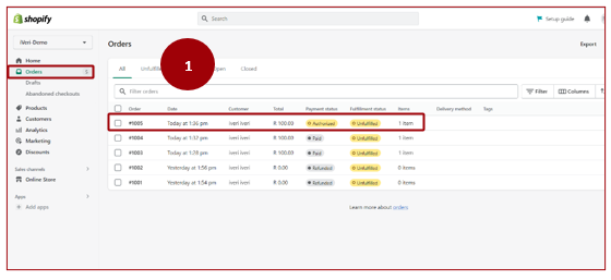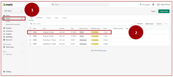 1. By clicking on the ‘Orders’ tab the merchant will be able to track: