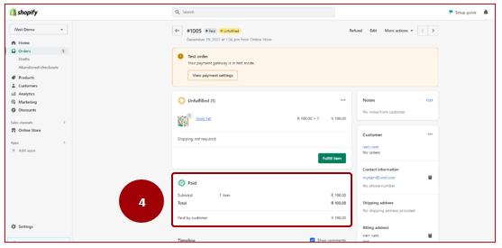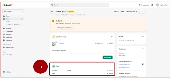 4. Once the Merchant has captured payment, the ‘Paid’ column will now reflect on the order.
