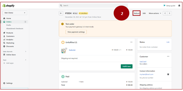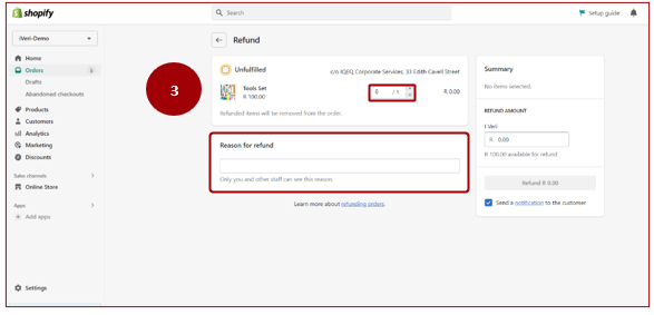 3. From the Refund tab, the Merchant would set the quantity they would need to refund.